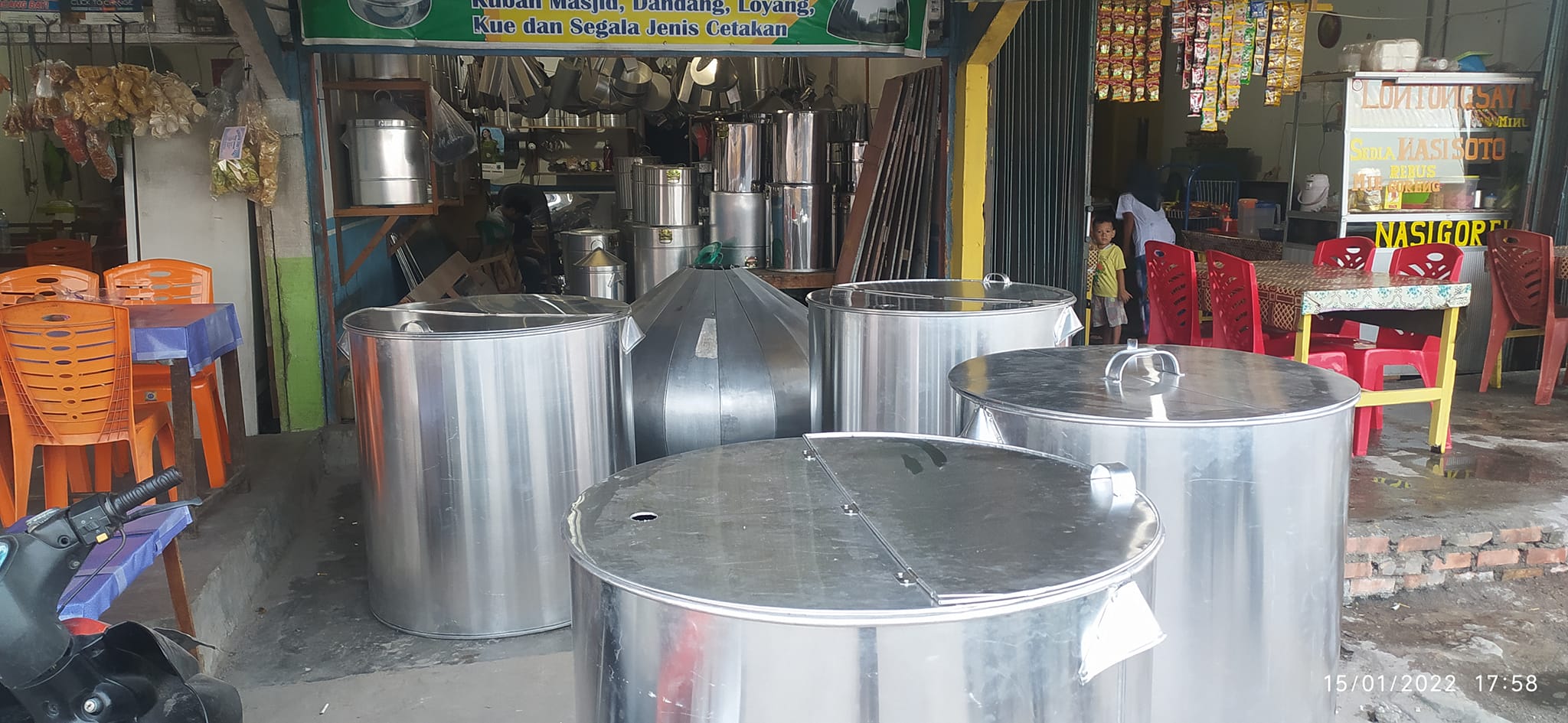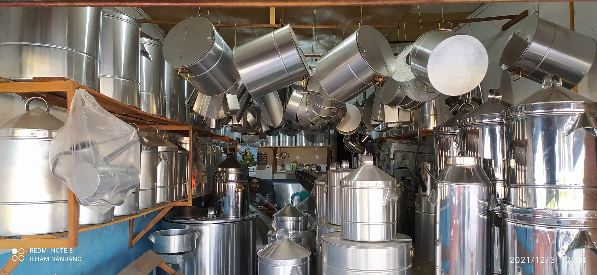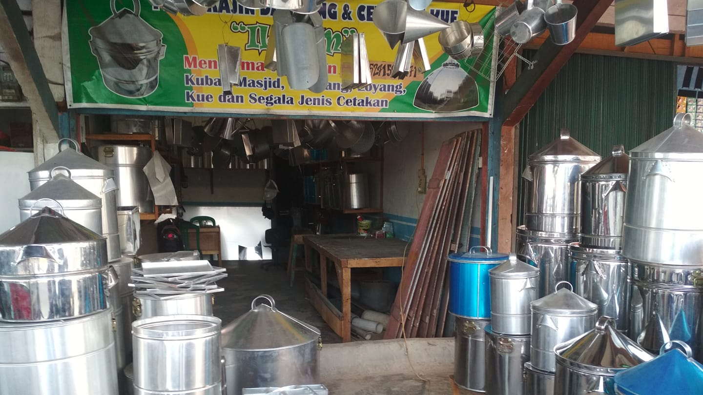 Berbagai macam dandang tempahan, cetakan kue dan qubah mesjid.